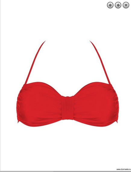 Бюст -- мягкое бандо со съёмными корректорами внутри. Тонкая длинная завязка-спагетти фиксирует элегантную полоску бюста на шее и спине. Широкая планка по центру модели определяет анатомию правильной посадки.
