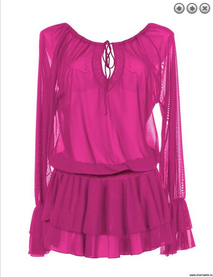 Оригинальная туника выполнена из тонкой эластичной сетки, с двойной оборкой по линии бедер и рукавам.
