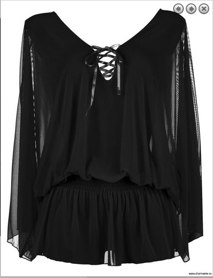 Стильный нюанс - имитация шнуровки алтасной лентой в тон на глубоком вырезе.