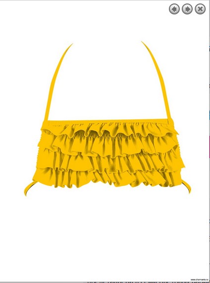 Эффектный бюстик -- маленькое бандо рюкзачного типа с тонкими завязками и многоярусными густыми рюшами по переду. Модель представлена в семи цветовых вариациях и отлично комплектуются с любыми деталями из коллекции "ИРИДА", независимо от цвета изделий.