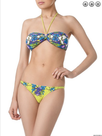 Молодёжный стильный купальник. Бюст - мягкое бандо с тонкими завязками на шею и застёжкой на спине. Плавки низкой посадки с узким бочком. Модель выполнена в технике поместного расположения принта и в сочетании с микрофиброй это придаёт рисунку мягкое, матовое звучание красок.