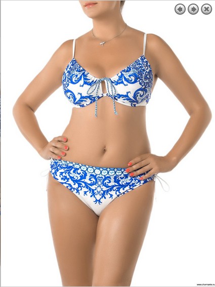 Великолепная пляжная пара. Бюст - дублированные чашки на каркасной поддержке с регулировкой по линии декольте. Бюст-балконет, с формованными чашками, дополненными съемными корректорами push up на контрастной поддержке. Плавки глубокой посадки с широкими бочками, которые мягко драпируются завязками-спагетти.