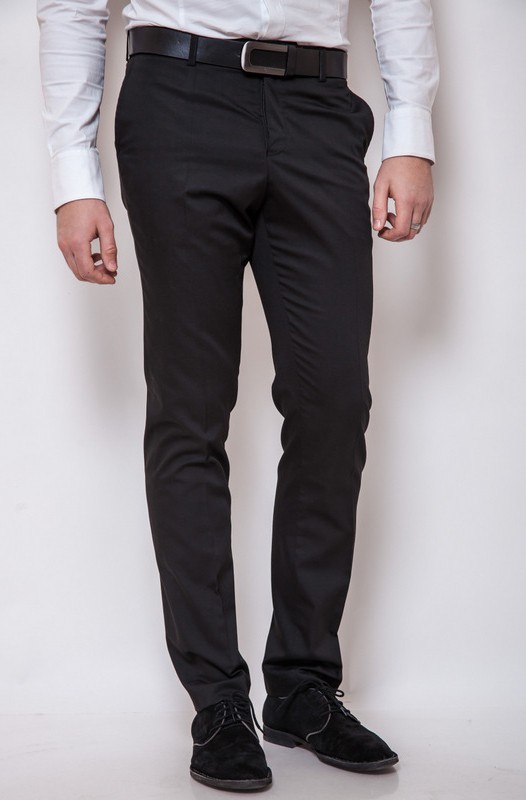 Стильные классические брюки, идеально сидящие на фигуре. Зауженные к низу брючины, 2 кармана с клапанами сзади и два с отрезным бочком спереди. Шлевки на поясе, застежка на молнию и пуговицу.