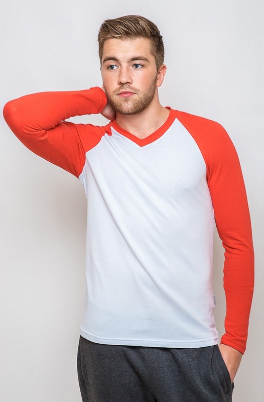Тонкий трикотажный пуловер с неглубоким V-образным вырезом. Рукава реглан отчетливо подчеркивают достоинства мужского силуэта. Сочетание двух цветов красного и белого делают модель яркой и стильной. Носите с джинсами, спортивными штанами из мягкого трикотажа, укороченными куртками.