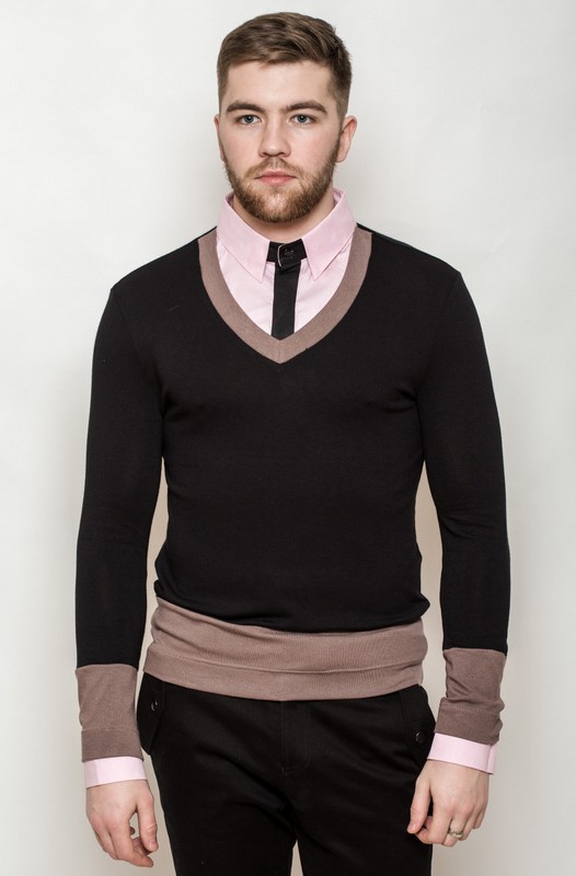 Тонкий пуловер с V образной горловиной. Сочетание неожиданного контраста: черный и розовый. Свежесть и благородство. Простота и комфорт на каждый день.