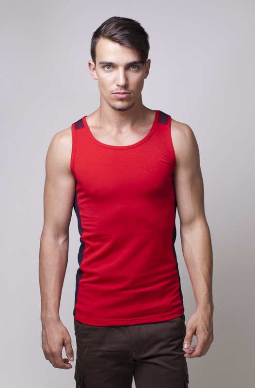 Очень стильная майка из 100% хлопка. Интригующие вставки из прозрачной контрастной ткани по бокам и на спинке. Но, никаких переборов - все чисто по мужски. Коктейль из удобства и интриги.