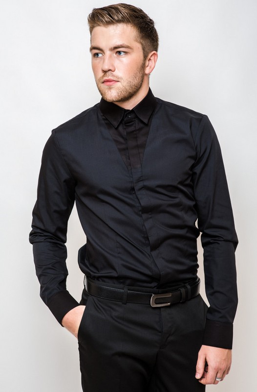 Любимица всех мужчин - черная, классическая рубашка с вытачками по талии. Такая вещь, наверняка, должна быть в каждом гардеробе. Потайная застежка и неожиданная задумка TOSовских дизайнеров. Зацени!