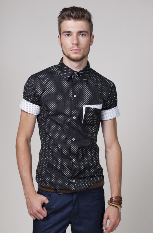 Как показала практика, для того, чтобы из обычной рубашки сделать запоминающуюся вещь, достаточно выбрать материал в мелкий горошек и добавить немного асимметрии. Получилось классно!