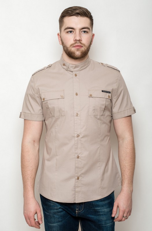 Косой воротник сегодня не так часто встретишь, а жаль: именно эта деталь может сделать любую рубашку оригинальной и запоминающейся. Данная модель бежевого цвета подойдет для тех, кто любит пробовать что-то новое, но при этом ценит комфорт и высокое качество -- ткань рубашки на 90% состоит из хлопка.