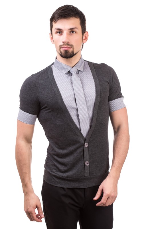 Мужской гардероб должен быть брутальным, стильным и современным! Мы предлагаем добавить в него немного дерзости. Рубашка-обманка облегающего силуэта с коротким рукавом, подчеркивает стать и привлекательность своего владельца на все 100%.