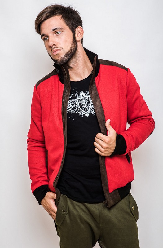Стильная тканевая куртка ярко красного цвета. Укороченный фасон - в угоду последним тенденциям моды. Потайная застежка - молния, манжеты на рукавах и по низу изделия. Воротник стойка с дополнительной застежкой на две пуговицы. Декоративные налокотники коричневого цвета. Два косых кармана по бокам. Эта осень пройдет с улыбкой, TOS позаботился.