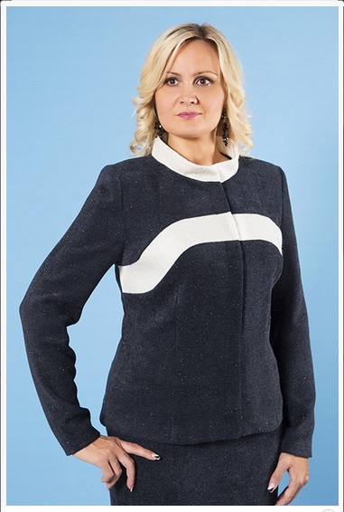 Описание модели: Жакет из шанели с легким блеском. Воротник стойка, отстоящая от горловины, и фигурная вставка на переде из контрастного букле. Застежка на кнопки. Рукав длинный. На подкладке. Длина по спинке от плечевого шва ок 60,5 см. На фото с юбкой 015-316.