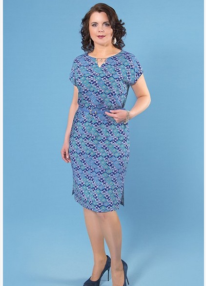 Описание модели: Платье полуприлегающего силуэта и вискозного штапеля. Фигурная форма горловины подчеркнута металлическим элементом, пришитым вручную. Небольшие разрезы в боковых швах. Ремень в комплект не входит. Длина по спинке от плечевого шва ок 104 см.