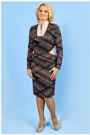Описание модели: Платье трикотажное комбинированное. Воротник и вставки по талии из однотонного трикотажа декорированы кружевной тесьмой. Рукав длинный.
