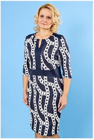Описание модели: Платье комбинированное из трикотажа фукро. Планки, кокетки переда и вставка по талии из однотонного трикотажа. Рукав 3/4.