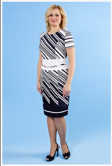 Описание модели: Платье футляр из хлопка стрейч с купонным рисунком. Рукав короткий. Хлястик с декоративным элементом по линии талии. Молния в среднем шве спинки. Длина по спинке от плечевого шва 104-109 см.