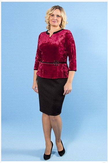 Описание модели: Платье нарядное комбинированное. Верх из эластичного панбархата, юбка из джерси. Рукав 3/4. Небольшая баска скрывает несовершенства фигуры. Контрастная планка по талии декорирована камнями, пришитыми вручную. Длина по спинке от плечевого шва ок 104 см.