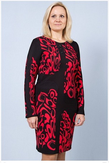 Описание модели: платье трикотажное прилегающего силуэта, перед декорирован фигурной вставкой из отделочной ткани и 3 крупными стразами, рукав длинный