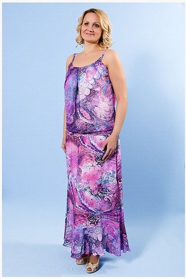 Описание модели: Платье шифоновое длинное на тонких бретелях, горловина переда застрочена складками, эластичная строчка по поясу вставке, подклад сетка-стрейч.