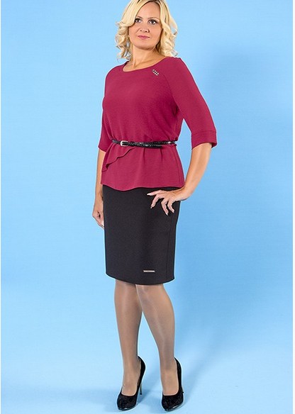 Описание модели: Юбка карандаш из костюмной ткани-стрейч. Длина ок 60 см. Верх на обтачке, подкладка сетка стрейч. Декоративный металлический элемент на переде. На фото с блузкой 880-30.
