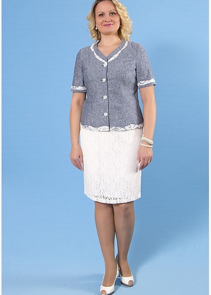Описание модели: Юбка карандаш из эластичного кружевного полотна. Длина ок 58 см. На чехле из хлопковой ткани. Однотонные планки по линии середины спинки. Разрез и молния в среднем шве спинки. На фото с жакетом 623-433.