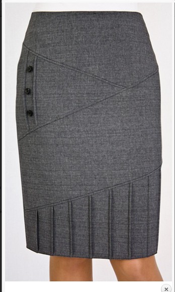 Описание модели: Юбка-карандаш, длина ок.60 см, нижняя часть переда застрочена защипами, ткань стрейч.