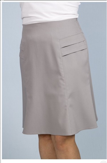 Описание модели: Юбка трапеция, длина ок. 56 см, фигурные подрезы на переде и спинке, складки по верхнему краю передних подрезов, ткань стрейч. Верх не обтачке.