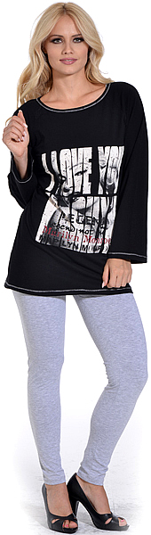 Комплект - майка с брюками, может использоваться как костюм для дома и отдыха. Майка с длинным рукавом. Брюки на широкой резинке.