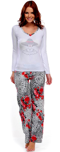 Комплект - майка с брюками, может использоваться как костюм для дома и отдыха. Майка с длинным рукавом, на груди рисунок, выложенный паетками. Брюки на резинке.