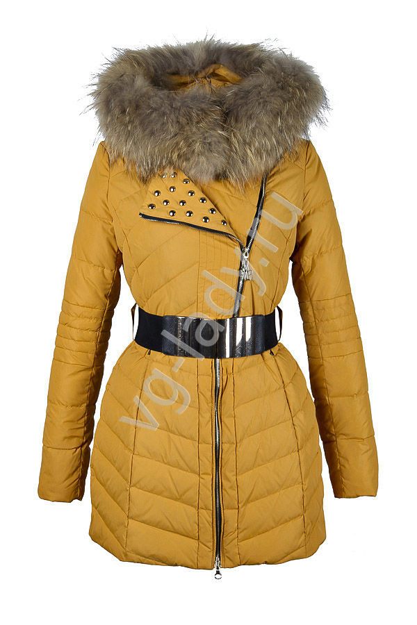 Полупальто пуховое Moncler с капюшоном, украшено клепками, застегивается в трех вариантах. Длина 73 см.