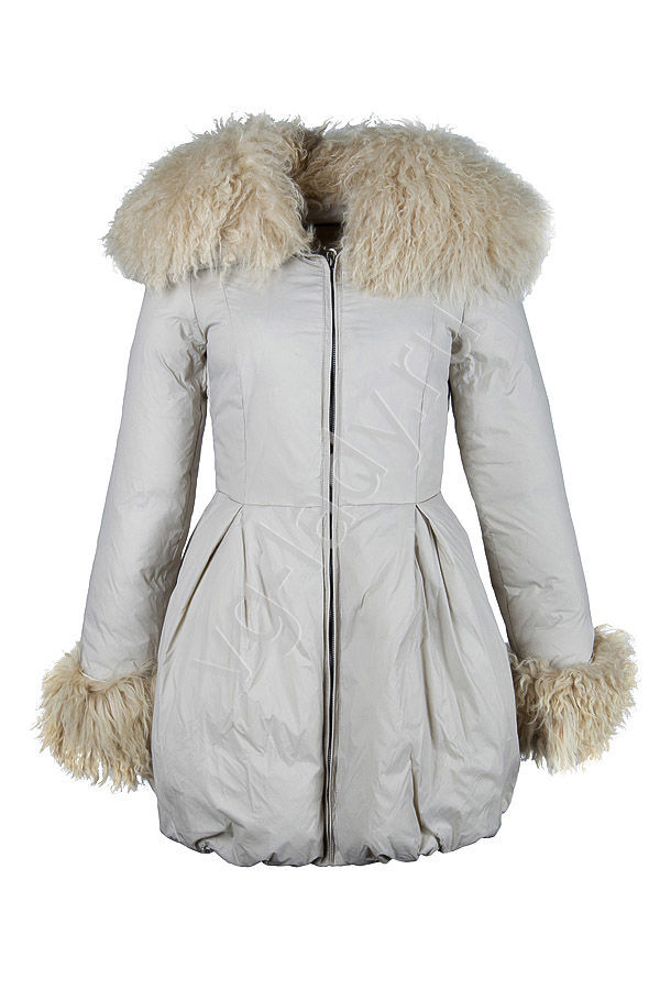 Полупальто приталенное пуховое, мех "козлик" отстегивается.Длина 80 см.