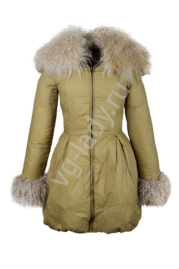 Полупальто приталенное пуховое, мех "козлик" отстегивается.Длина 80 см.