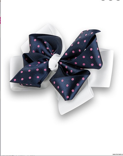 Стильная заколка-зажим прекрасно фиксируют непослушные прядки малышей. Двойные банты изготовлены из репсовой ленты контрастных цветов. Верхние банты украшены принтом в горошек. Хит сезона! Количество: 1 шт.