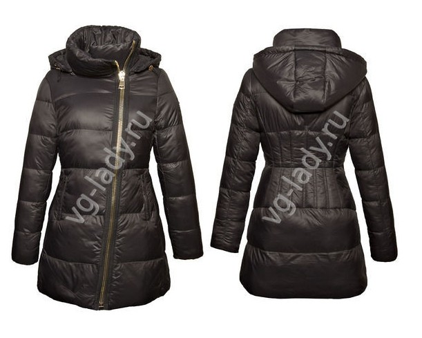 Пальто на синтепоне, капюшон отстегивается, спереди большая молния, воротник стойка, длина 74 см, рукав 62 см.