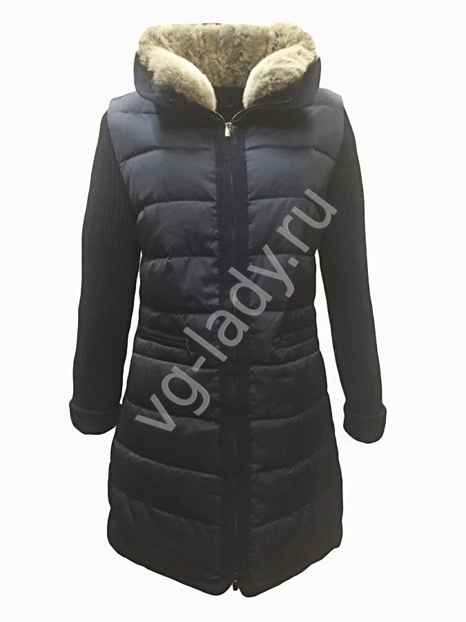 Полупальто на пуху с трикотажными рукавами (не промокают, есть подкладка из плащевки), по молнии трикотажная отделка, воротник - кролик (отстегивается)