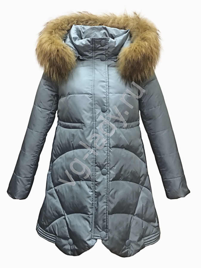 Полупальто на пуху с капюшоном, натуральный мех (капюшон и мех отстегиваются)