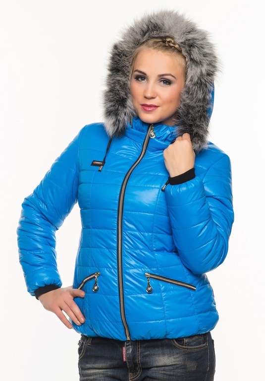 Короткая зимняя куртка, на зимнем утеплителе -синтепон. Стеганая, на капюшоне опушка- натуральный песец. Застегивается куртка на молнию ,карманы так же. Капюшон и опушка отстегиваются вмести и по отдельности. На рукаве присутствует вязаный -манжет.