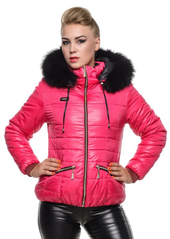 Короткая зимняя куртка, на зимнем утеплителе -синтепон. Стеганая, на капюшоне опушка- натуральный песец. Застегивается куртка на молнию ,карманы так же. Капюшон и опушка отстегиваются вмести и по отдельности. На рукаве присутствует вязаный -манжет.