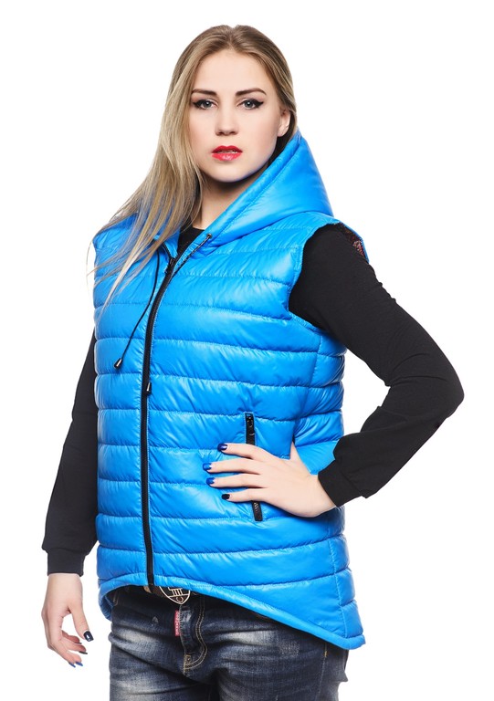 Состав: Стеганый жилет-парка,ткань-лакэ, утеплитель синтепон -100, на капюшоне металлическая лейба на основе из кож.зама.