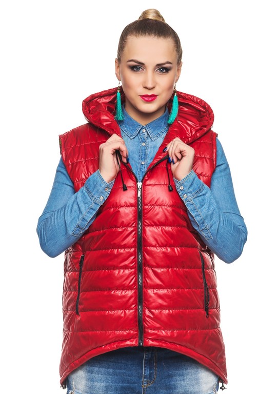 Состав: Стеганый жилет-парка,ткань-лакэ, утеплитель синтепон -100, на капюшоне металлическая лейба на основе из кож.зама.