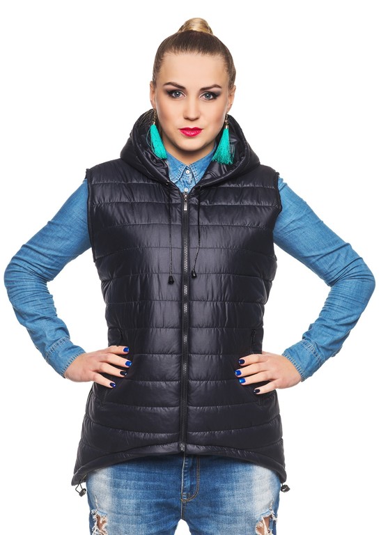 Состав: Стеганый жилет-парка,ткань-лакэ, утеплитель синтепон -100, на капюшоне металлическая лейба на основе из кож.зама.