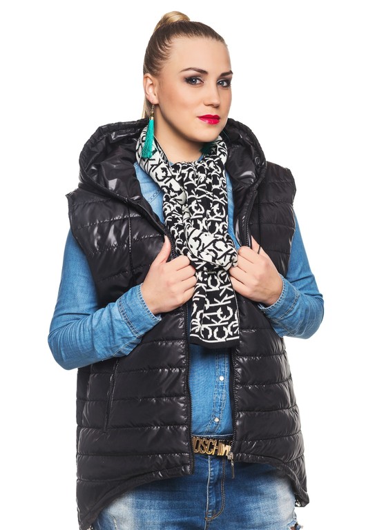 Состав: Стеганый жилет-парка,ткань-лакэ, утеплитель синтепон -100, на капюшоне металлическая лейба на основе из кож.зама.