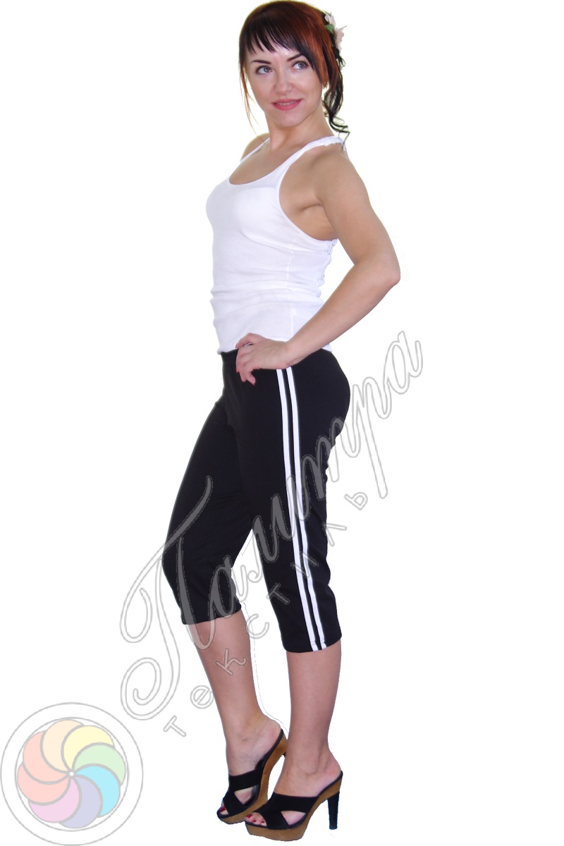 Классные женские бриджи, выполнены из эластичного кулирного полотна составом 95% хлопок 5% лайкра. Благодаря синтетической нити прекрасно тянутся, облегая фигуру подчеркивая её достоинства. Бриджи декорированы контрастными лампасами из износоустойчивого материала.