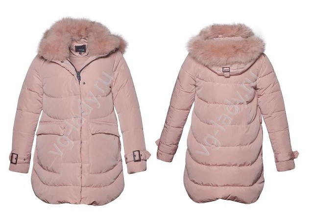 Пальто пуховое с шапкой, мех натуральный (отстегивается), шапка не отстегивается. Длина спереди - 72 см, длина сзади - 80 см, рукав - 62 см