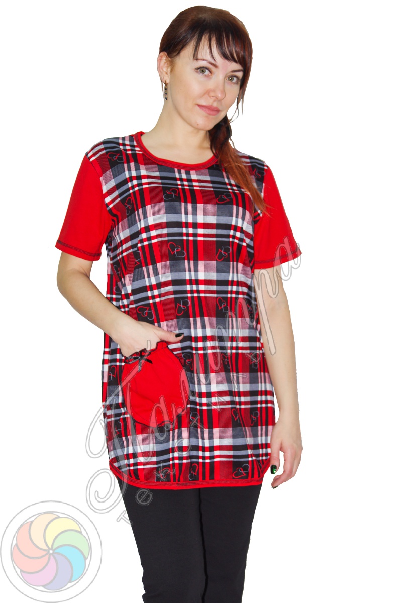Оригинальная женская туника приталинного кроя, горловина и низ изделия обработан кантом из хлопчатобумажной ткани. Спереди, придаёт шарму, небольшой удобный кармашек для мелких вещей и всё это выполнено из трикотажного кулирного полотна, а в итоге получилась хорошая и недорогая туника для повседневного быта.
