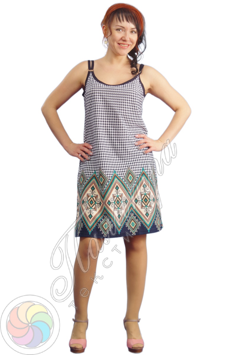 Сарафан женский на бретелях, свободного силуэта. выполнен из хлопкового трикотажного полотна.