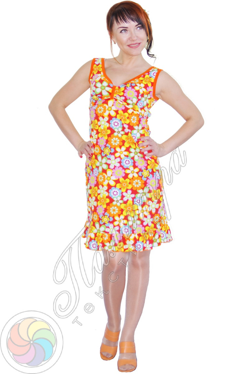 Яркий сарафан из лёгкого трикотажного полотна весёлой расцветки.
