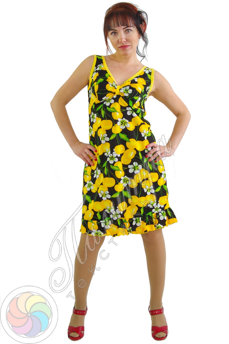 Яркий сарафан из лёгкого трикотажного полотна весёлой расцветки.