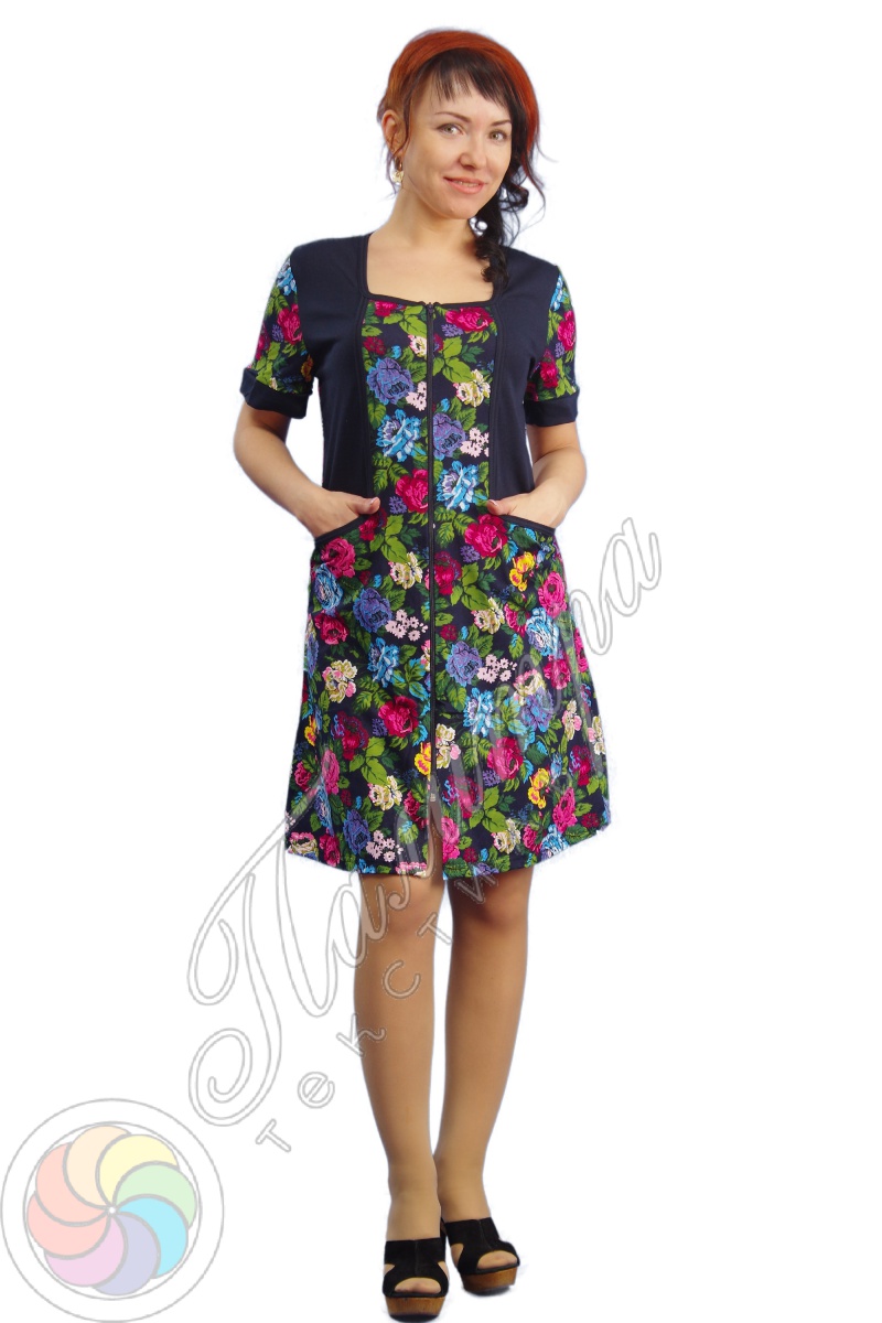 Оригинальный комбинированный халат выполнен из ткани интерлок плюс кулирное трикотажное полотно.