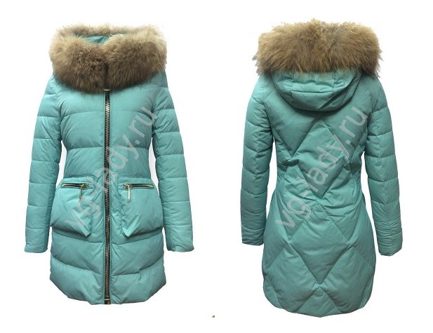 Полупальто пух с капюшоном, мех енот (отстегивается), впереди накладные карманы. Длина-84см, рукав-63см.